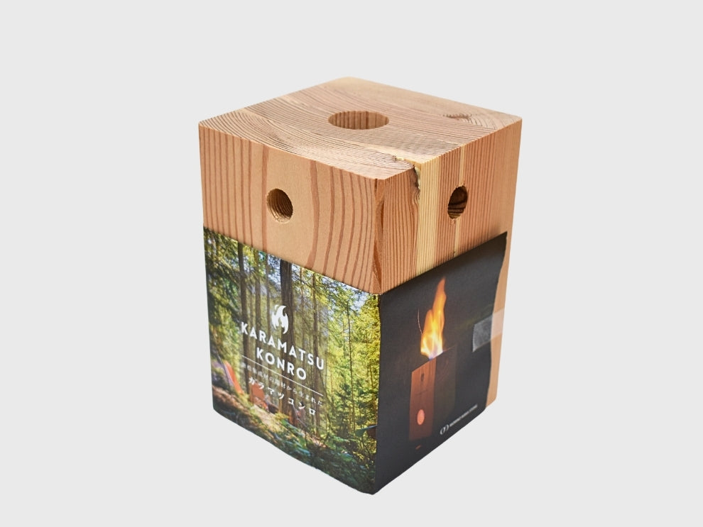 このコンロは、信州産カラマツを使った"そのまま燃やせる焚き火ユニット"です。