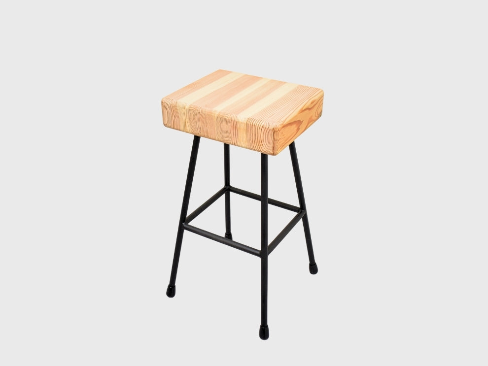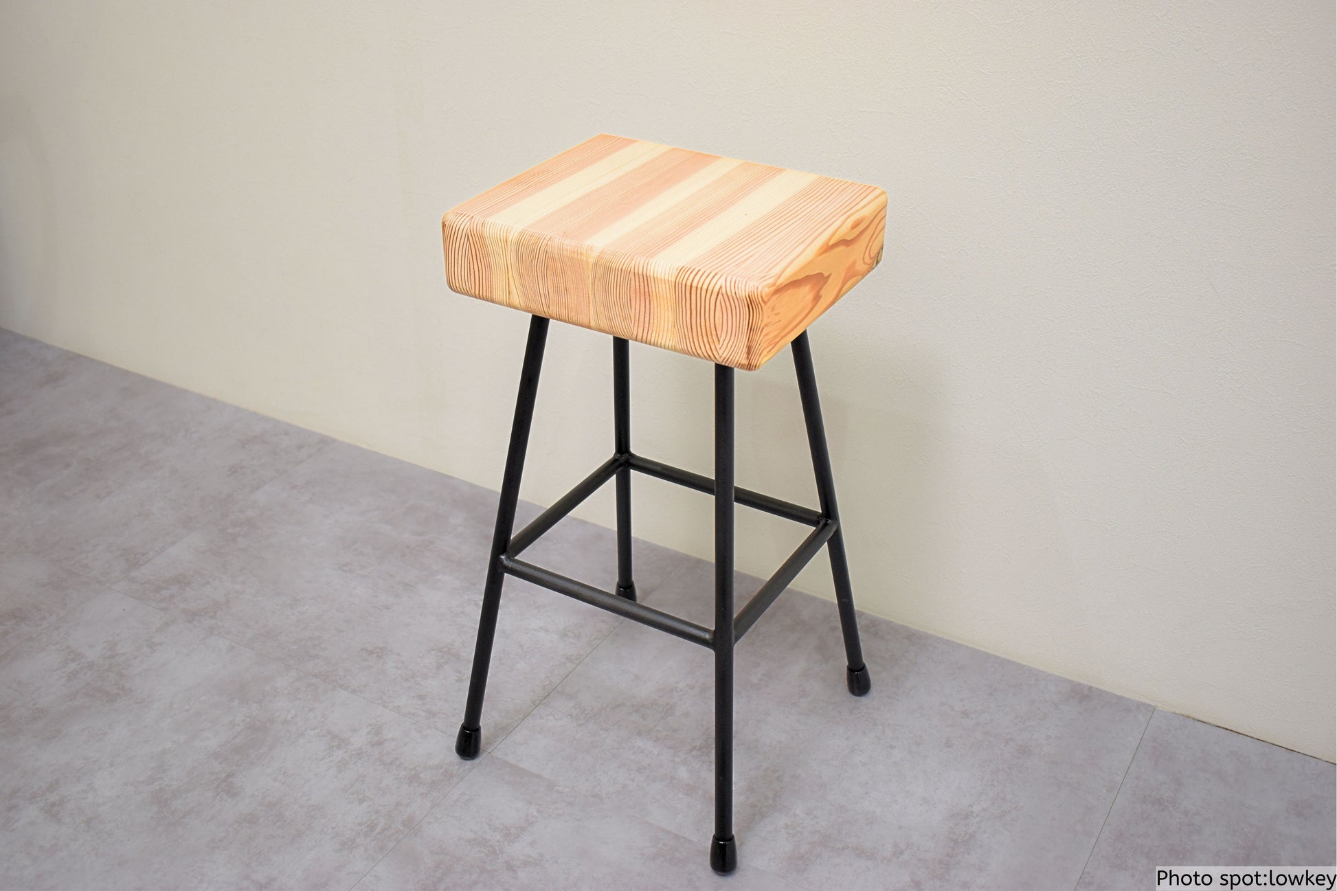 信州のカラマツ集成材を天板に使用し、130kgの耐荷重試験をクリアした安心のスツールです。 46cmは一般的なダイニングチェアと同じ高さで、食卓やワークスペース、玄関などに最適です。 アイアンの脚部は職人による手作業のため強靭で、木の温もりのコントラストが空間を引き締めます。 無塗装仕上げのため、木目の豊かな表情と経年変化を楽しめるスツールとなっています。